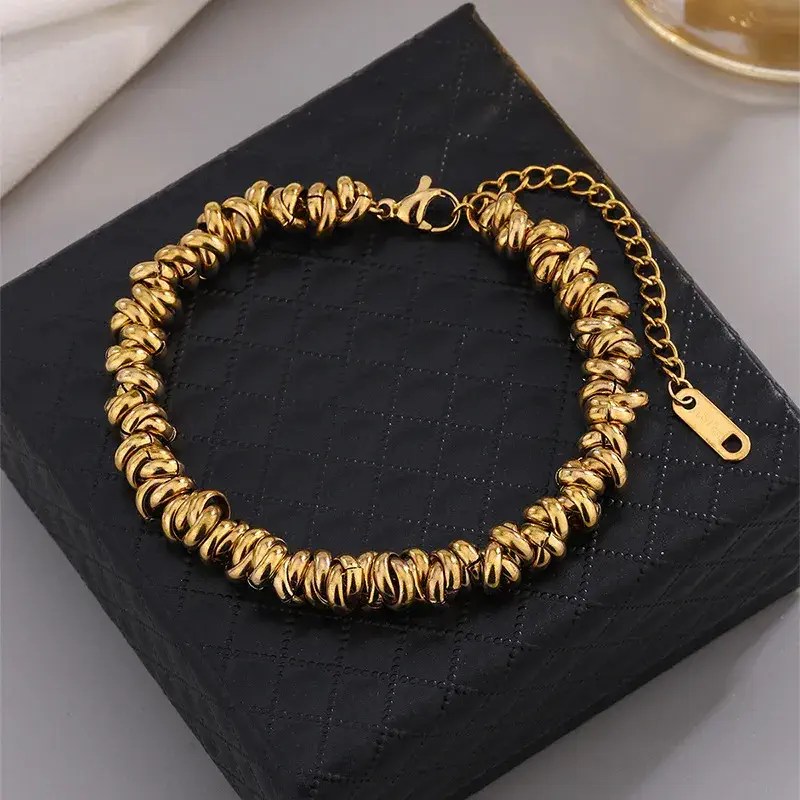 This modern bracelet features a striking geometric design, crafted from high-quality titanium steel for a touch of contemporary elegance.